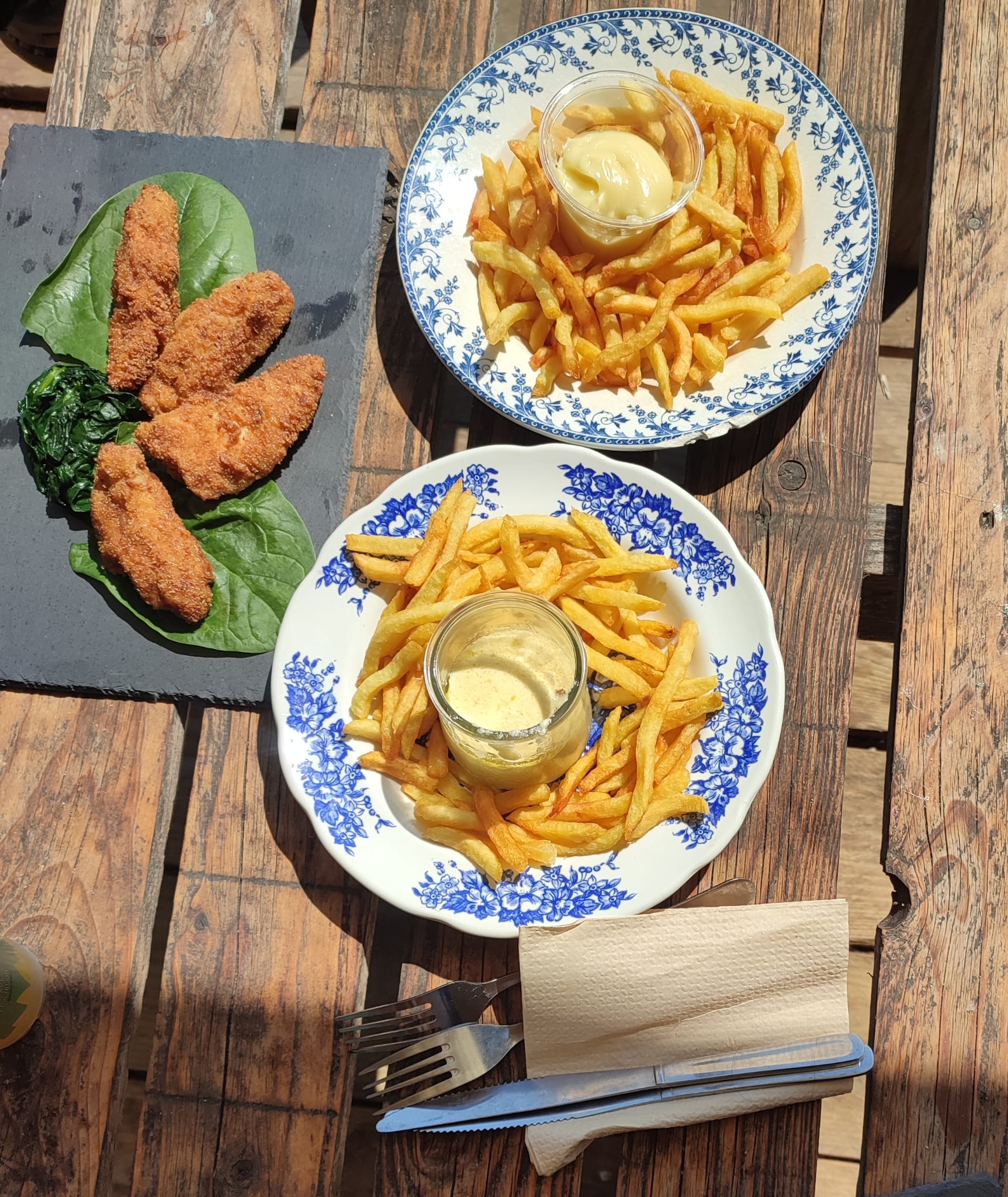 Le matin et le midi, vous pouvez vous régaler avec une offre de petit déjeuner, bons cafés, des frites, du fish and chips, du poulet frit, des cookies, des glaces… et bien sûr des bonnes bières artisanales et jus locaux !