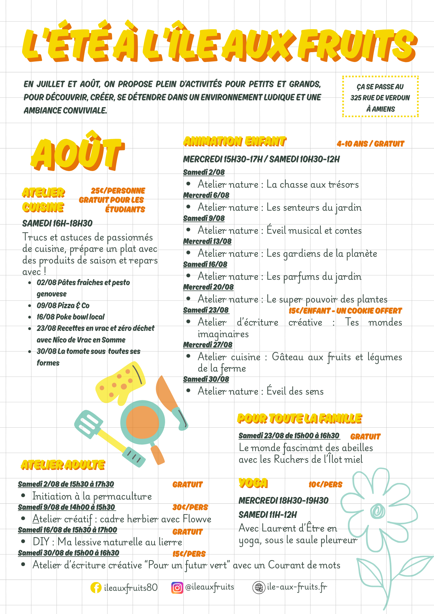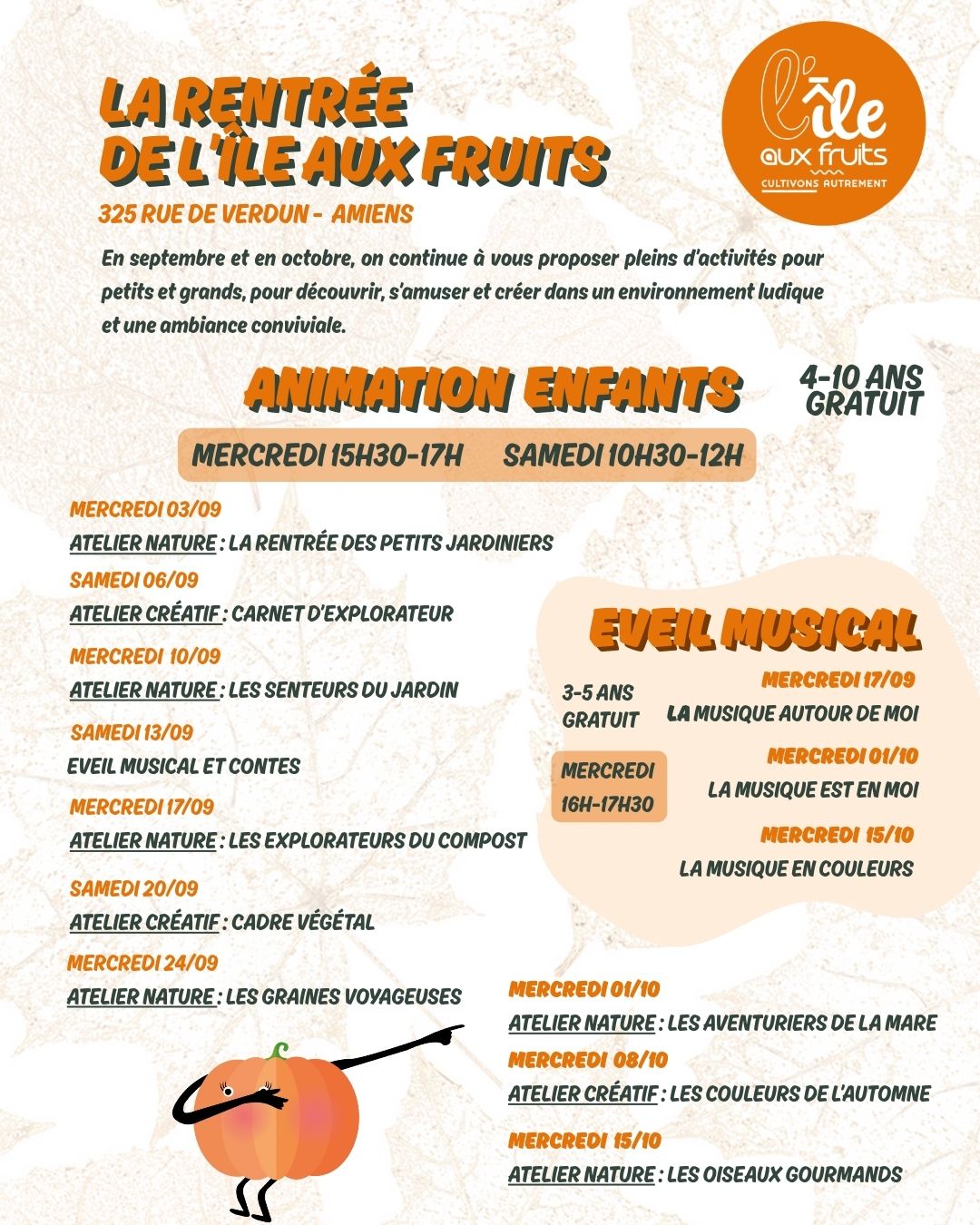 C’est gratuit, à partir de 5 ans, il faut juste réserver par mail à inscription@ile-aux-fruits.fr.