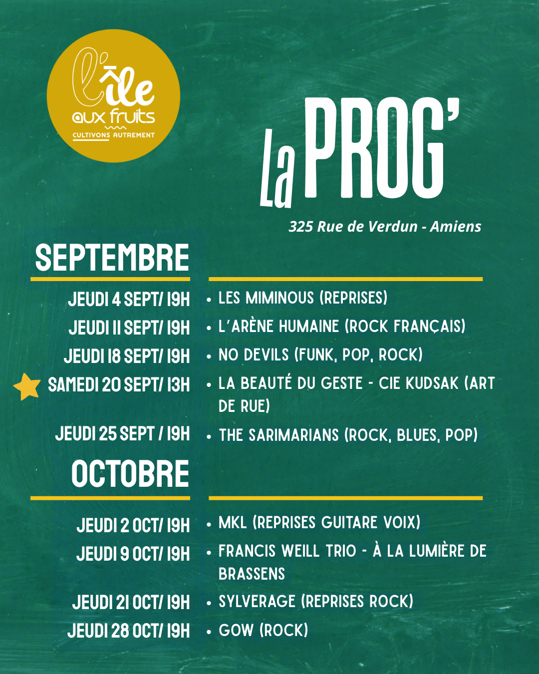 La programmation du mois d’août et septembre sur la scène de l’île aux fruits.