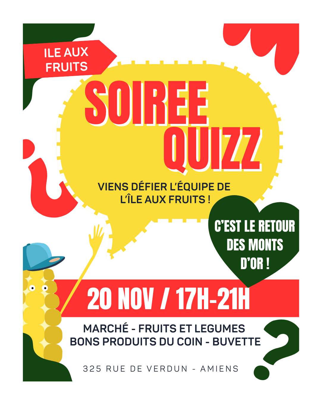 L’île aux fruits sera ouverte de 17h à 22h ce jour là avec le marché de fruits et légumes, les jeux, les bons produits du coin, la buvette…